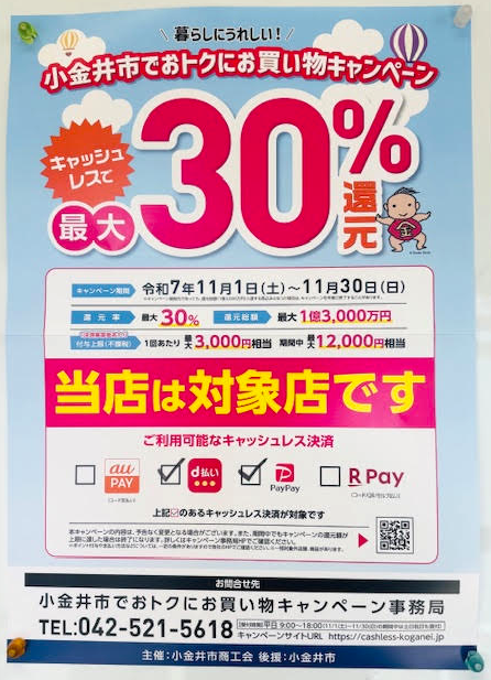 11月いっぱいなのと、小金井市の予算がなくなり次第終了となりますので、ご注意ください。