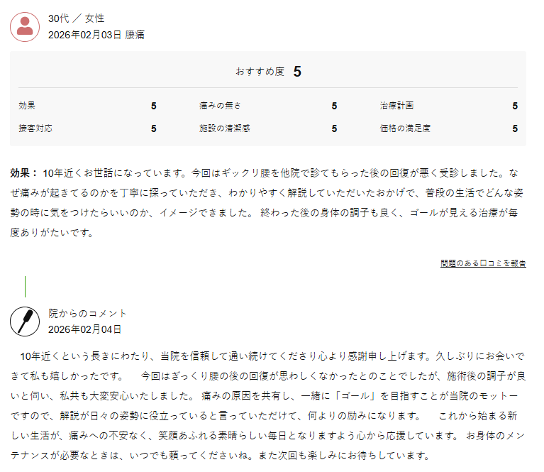 本日は、当院が掲載されている鍼灸院検索・予約サイト「健康にはり」に寄せられた口コミについて、少しだけお話しさせてください。